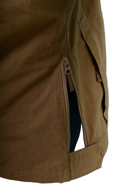 Sleeve pockets are equipped with inputs from the top and side. The front chest pockets are also available when using a ballistic vest. At the same time, the zipper riders are located outside the space under the ballistic vest to avoid secondary injuries when the vest is hit in the zipper.