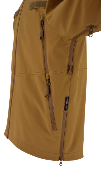 Softshell jacket with highly breathable membrane and Coolmax lining for physically demanding operations with need for high ventilation.