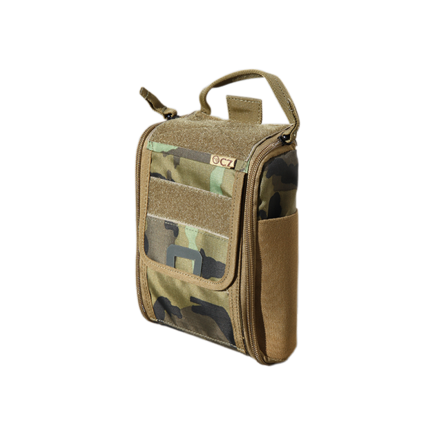 The pouch for medical equipment IFAK was developed in cooperation with the specialists of the Emergency Services of the North Moravian Region and colleagues from the Czech Association of Combat Medics. The pouch allows the storage and use of all emergency medical equipment for paramedics and combat medics. The IFAK can be attached to the thigh platform, belt or MOLLE system using removable platforms. The pouch itself allows rapid access to the medical material by easily "tearing off" the platform.